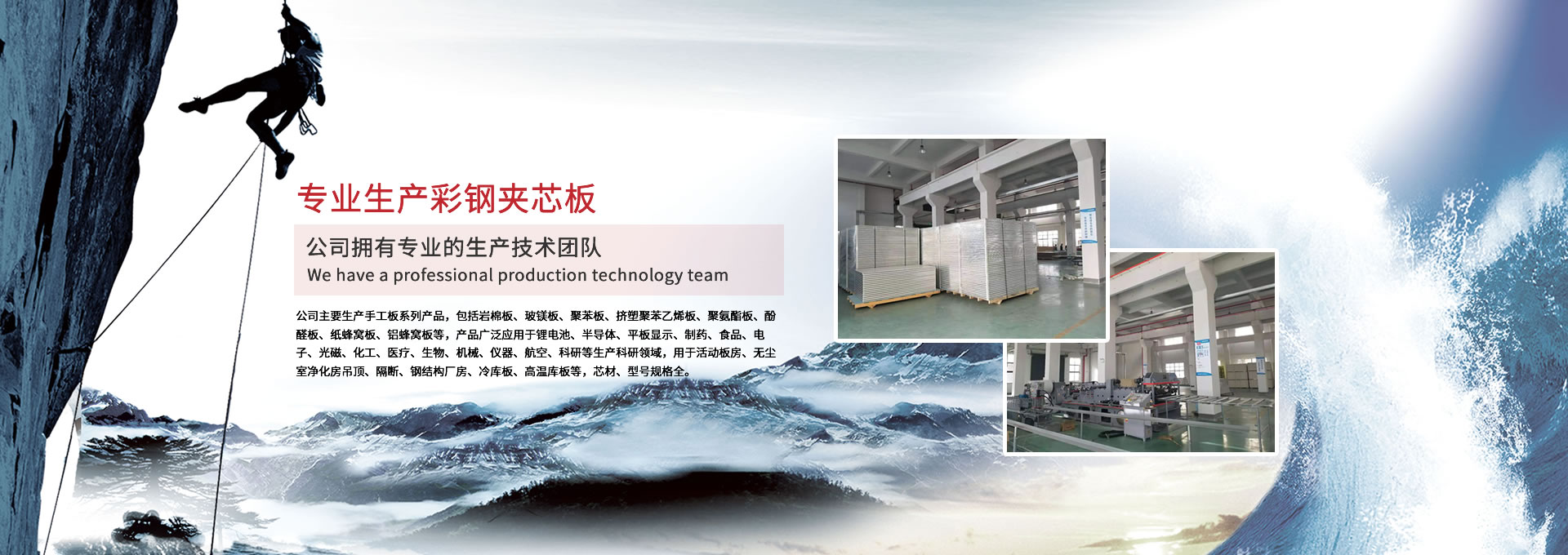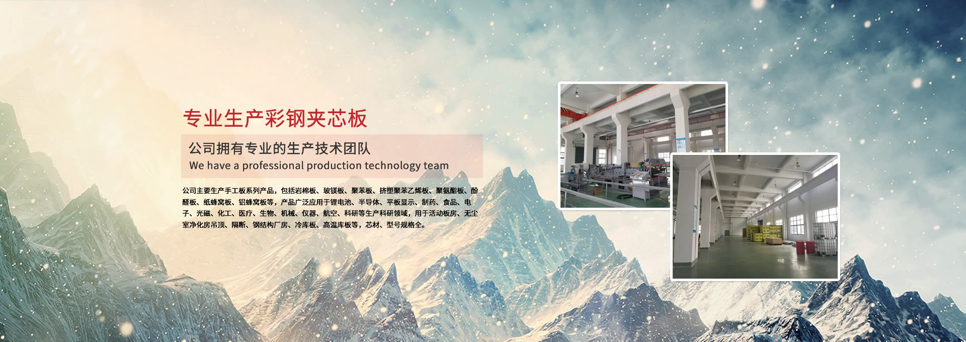 公司主要生產(chǎn)手工板系列產(chǎn)品,包括巖棉板、玻鎂板、聚苯板、擠塑聚苯乙烯板、聚氨酯板、酚醛板、紙蜂窩板、鋁蜂窩板等,產(chǎn)品廣泛應用于鋰電池、半導體、平板顯示、制藥、食品、電子、光磁、化工、醫(yī)療、生物、機械、儀器、航空、科研等生產(chǎn)科研領域,用于活動板房、無塵室凈化房吊頂、隔斷、鋼結構廠房、冷庫板、高溫庫板等,芯材、型號規(guī)格全。 公司擁有專業(yè)的生產(chǎn)技術團隊,周到的服務保證,以“質量至上、信譽至上、服務至上”為宗旨,為用戶提供合格的產(chǎn)品和滿意的服務,歡迎各界朋友參觀、指導!公司竭誠希望與各界朋友建立廣泛聯(lián)系,加強相互合作、共同發(fā)展!